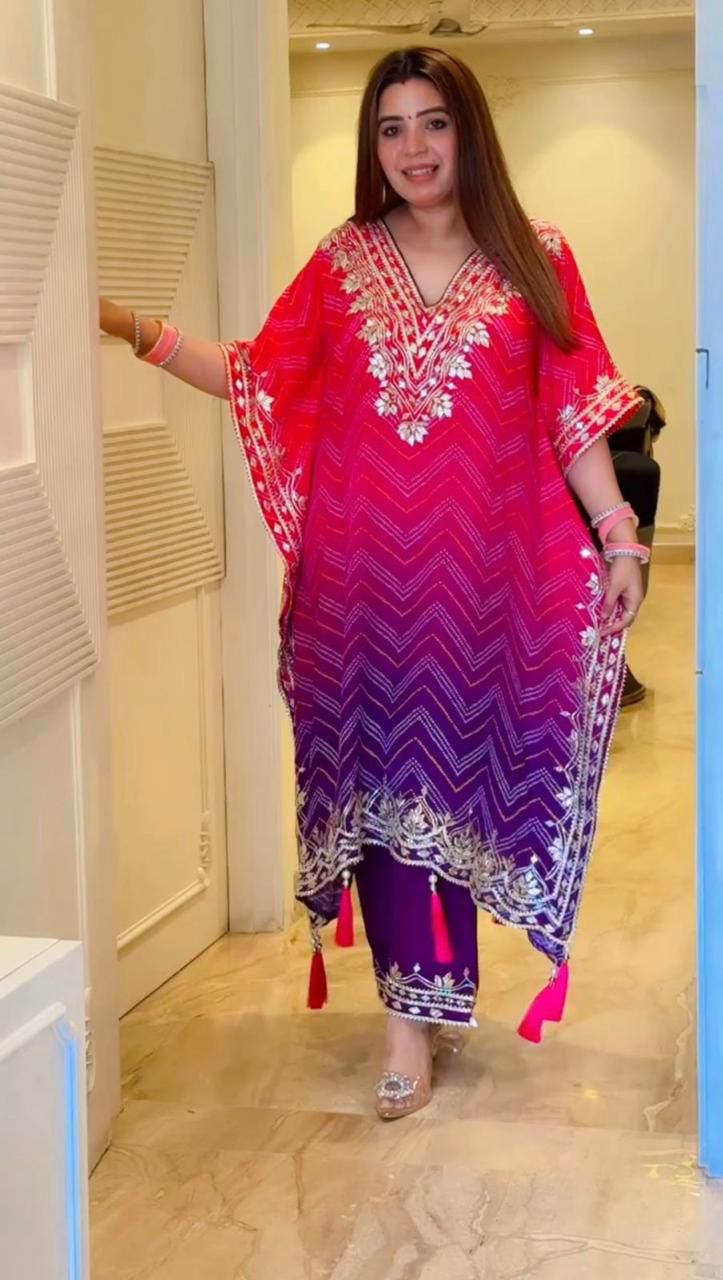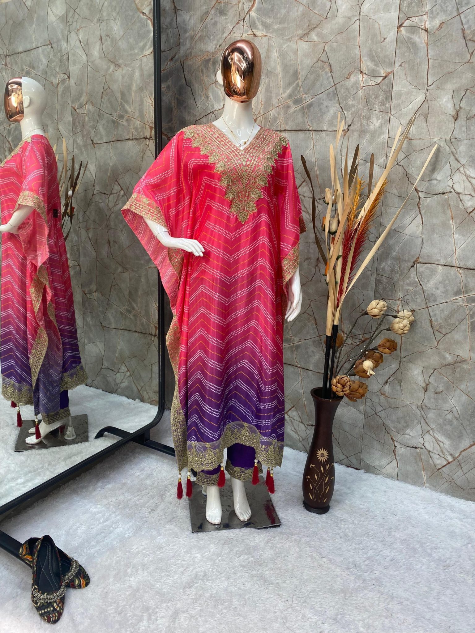 THE BANDHANI PRINT WITH SEQUENCES EMBROIDERY WORK KAFTAN WITH PANT